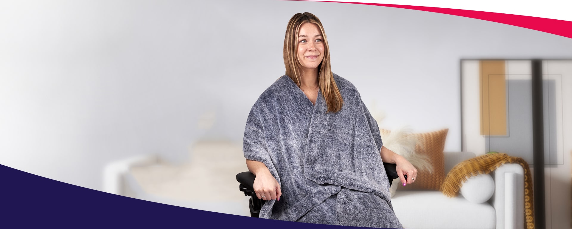 One-of-a-kind Chair Blanket that attaches to any Office Chair. Wrap the flaps together to create an easy-in and easy-out convenience.